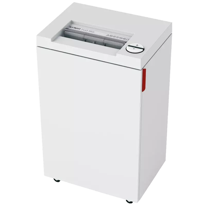 Convenient and powerful Deskside shredder with Smar Shred Contron (SSC) for shredding without paper jams. Comprehensive SPS safety package: Easy swithc control element uses illuminated colour icons and symbols to indicate operational status and functions as an emergency stop switch; patented, electronically controlled, transparent safety shield in the feed opening; automatic power cut-off when cabinet is open or shred bin is full; automatic reverse and power cut-off when overfed, double protection against overheating; Zero energy Consumption Sleep mode cust of power supply after 30 minutes of inactivity.